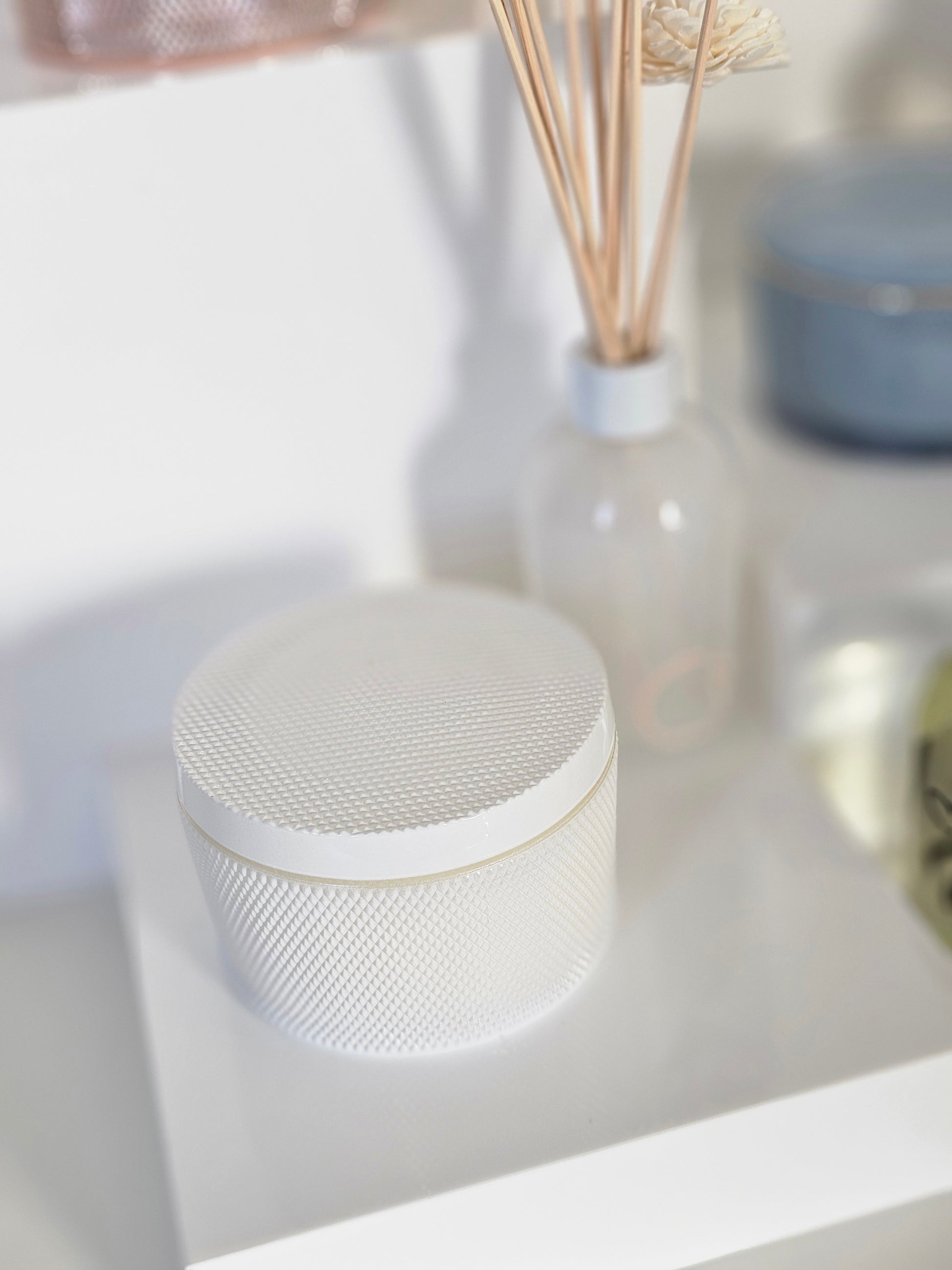 Bring soft sophistication to your home with the White Glow Candle Jar + Diffuser Combo.